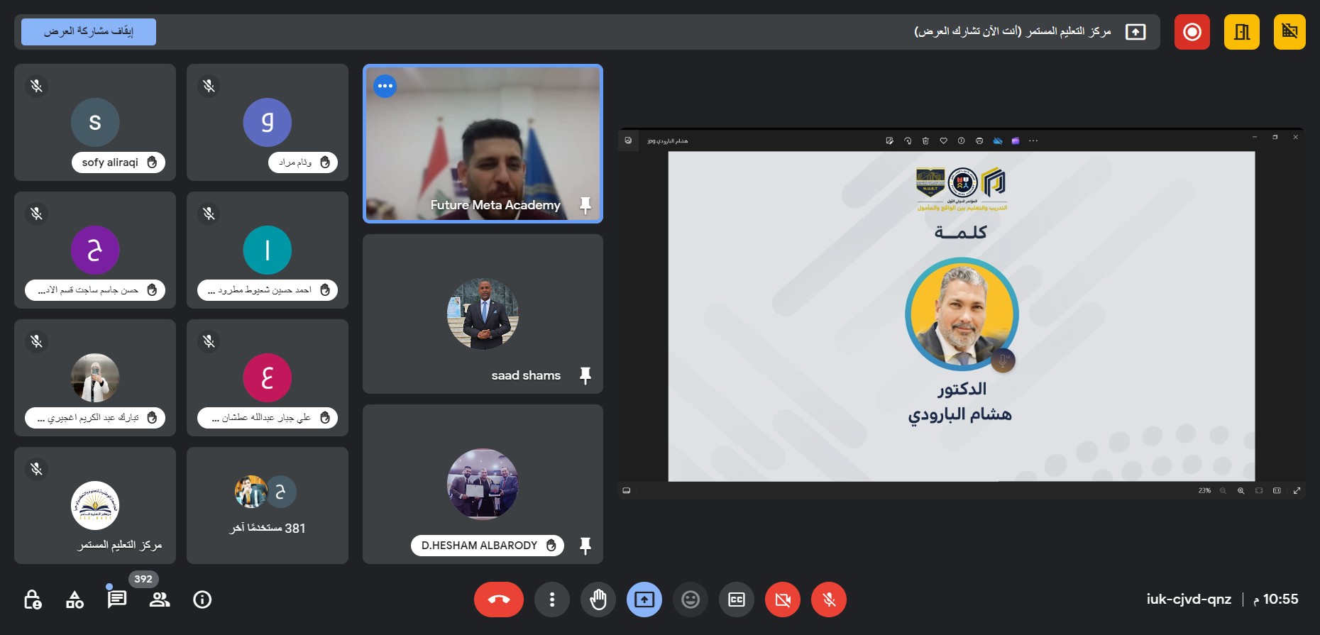 The conference will be held on Thursday, December 28, 2023, starting at 7:00 PM (Baghdad time) via the Google Meet platform.