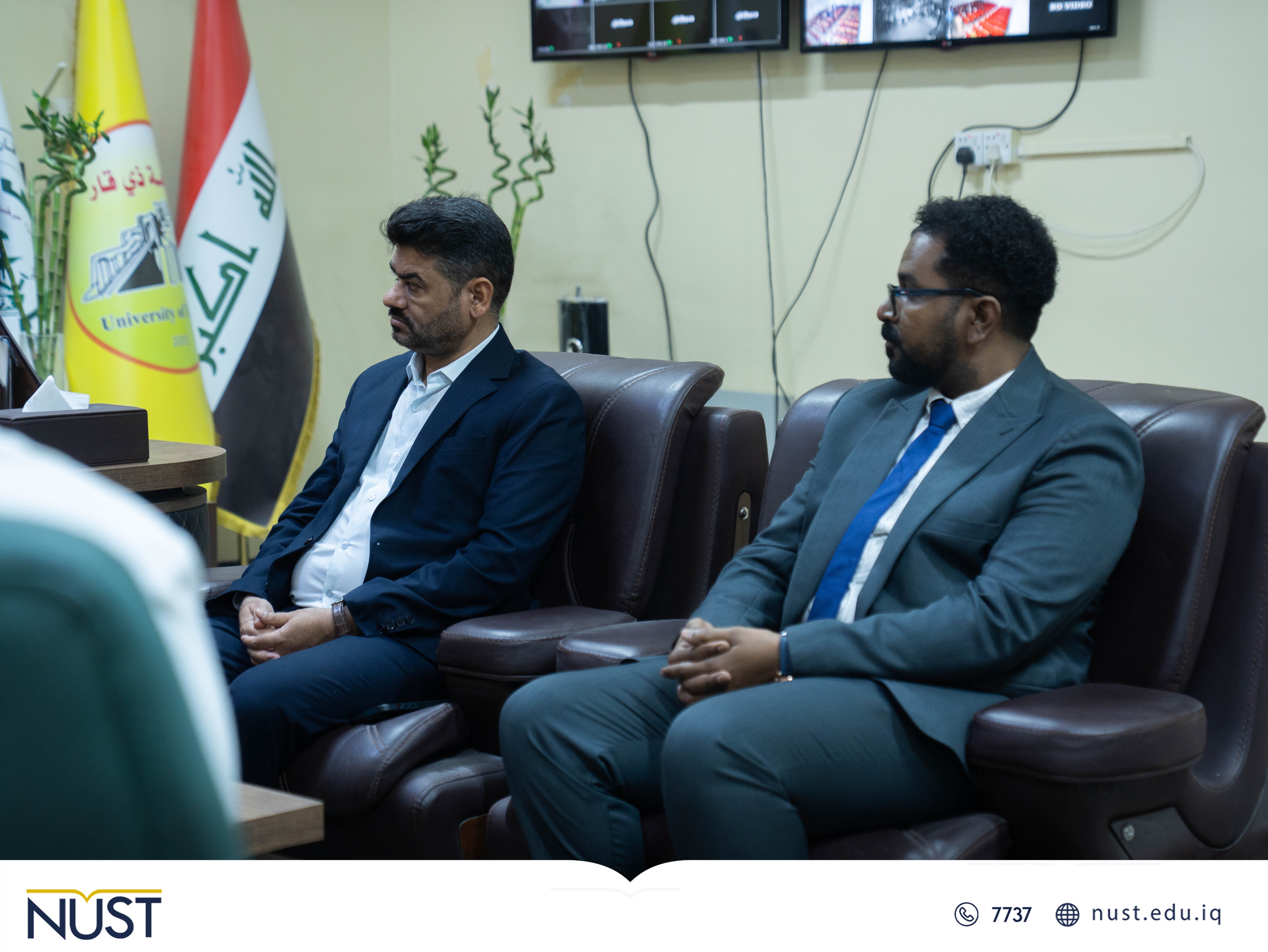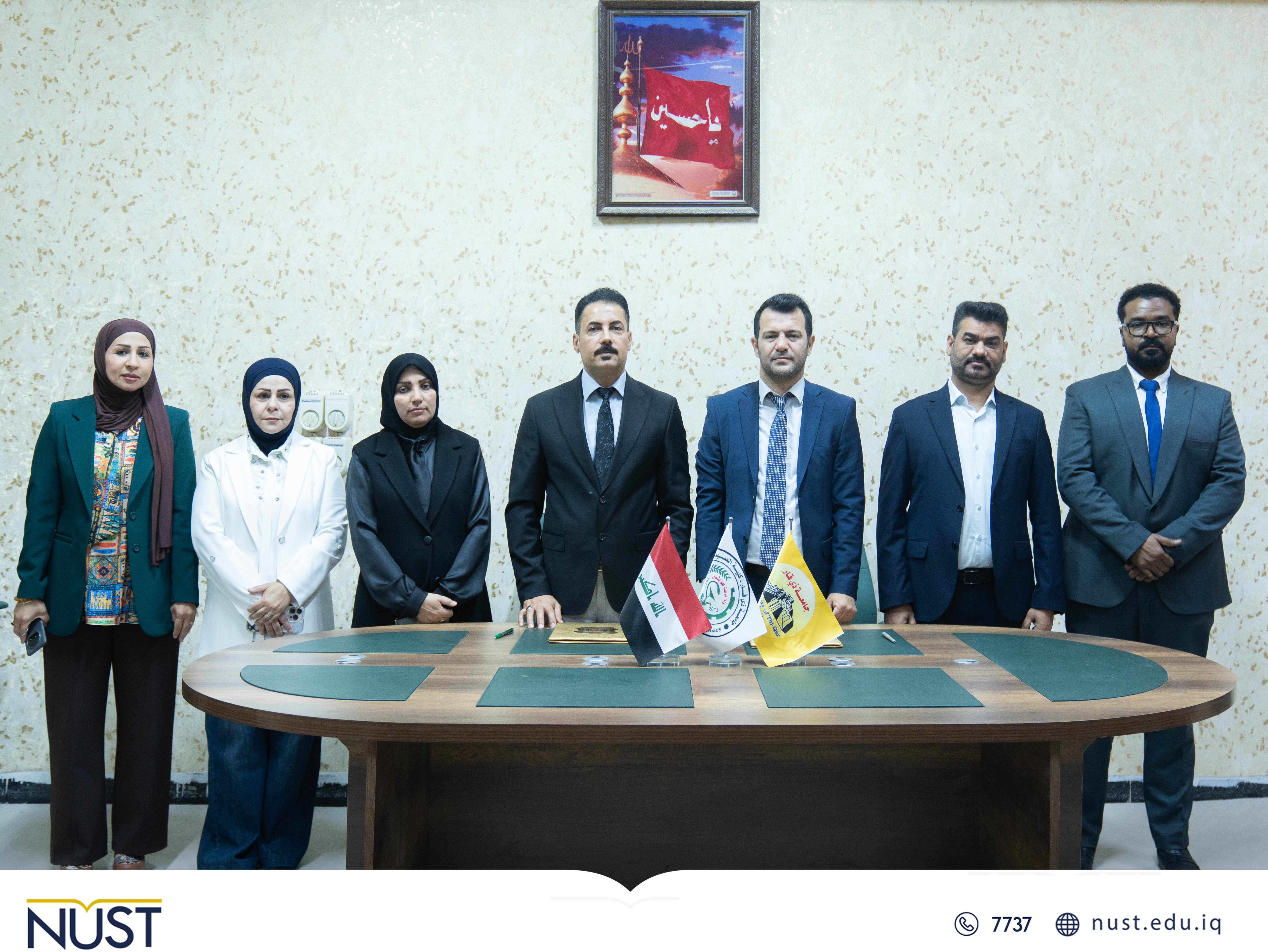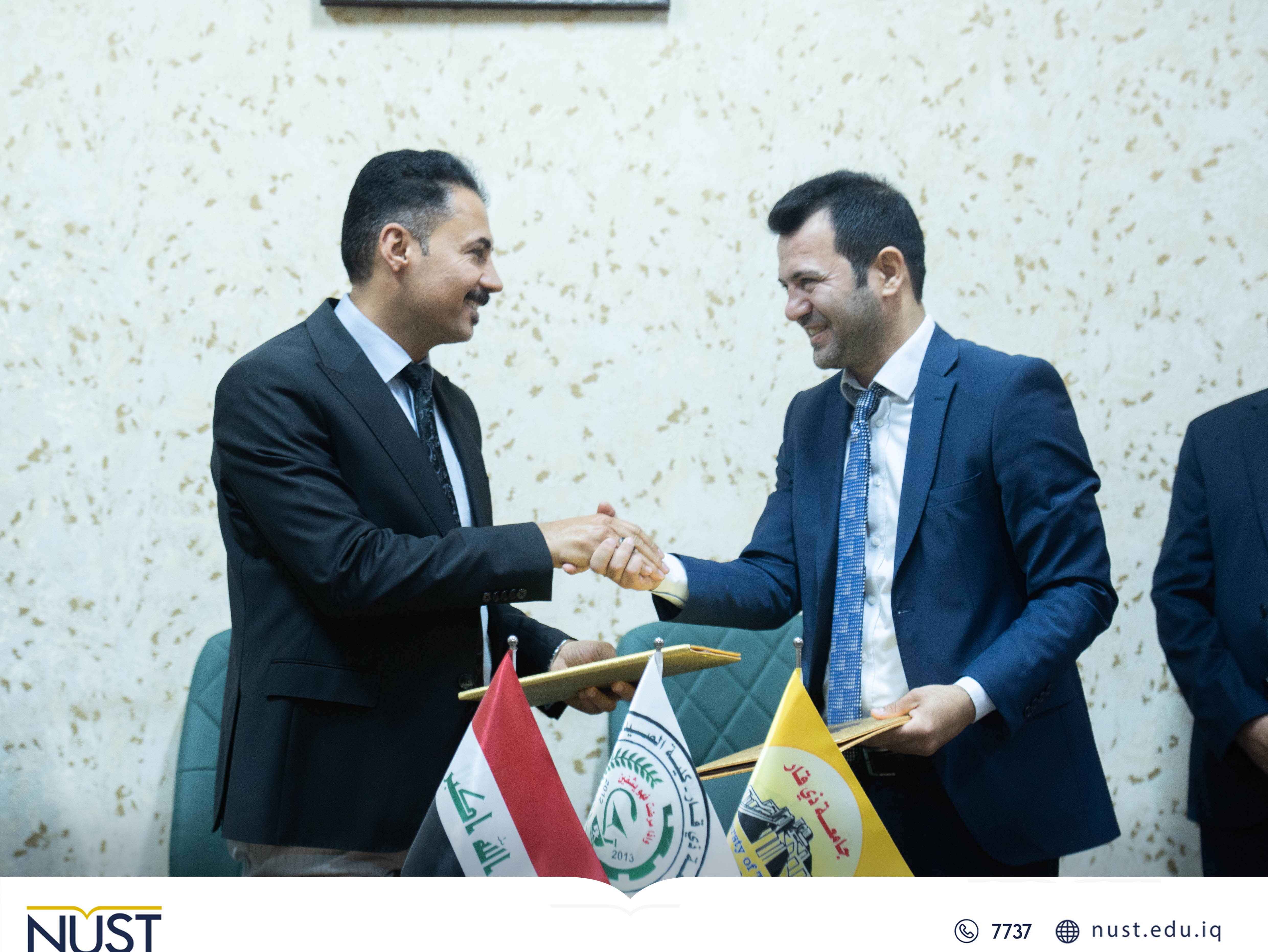 The National University of Science and Technology witnessed the signing of a scientific twinning agreement between the College of Pharmacy at the National University of Science and Technology and the College of Pharmacy at Dhi Qar University, within the framework of strengthening academic and scientific cooperation between educational institutions in Dhi Qar.